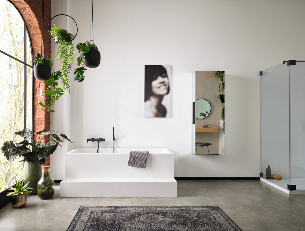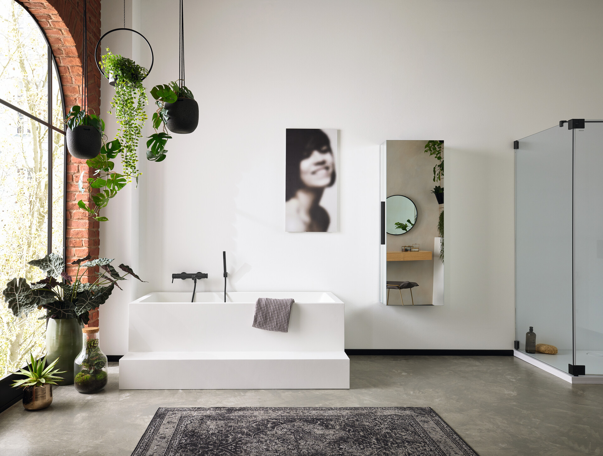 Von der Natur inspiriert. Gefertigt aus natürlichen Materialien zu formvollendeten Produkten. Aus der Feder der Designerin Anke Salomon. Mit white gelingen zeitlos schöne Bäder aus einem Guss, in denen wir perfekt entspannen können. Über alle Produktgruppen hinweg begeistern die Produkte der Designlinie white mit einer ruhigen, klaren und zeitlosen Schönheit. Alles ist von der Formensprache über das Material bis hin zu den Farben aufeinander abgestimmt und baut aufeinander auf. Wannen, Möbel und Spiegelschränke sind möglichst puristisch und monolithisch gehalten, Armaturen und Accessoires bilden einen leichten, filigranen Gegenpol.